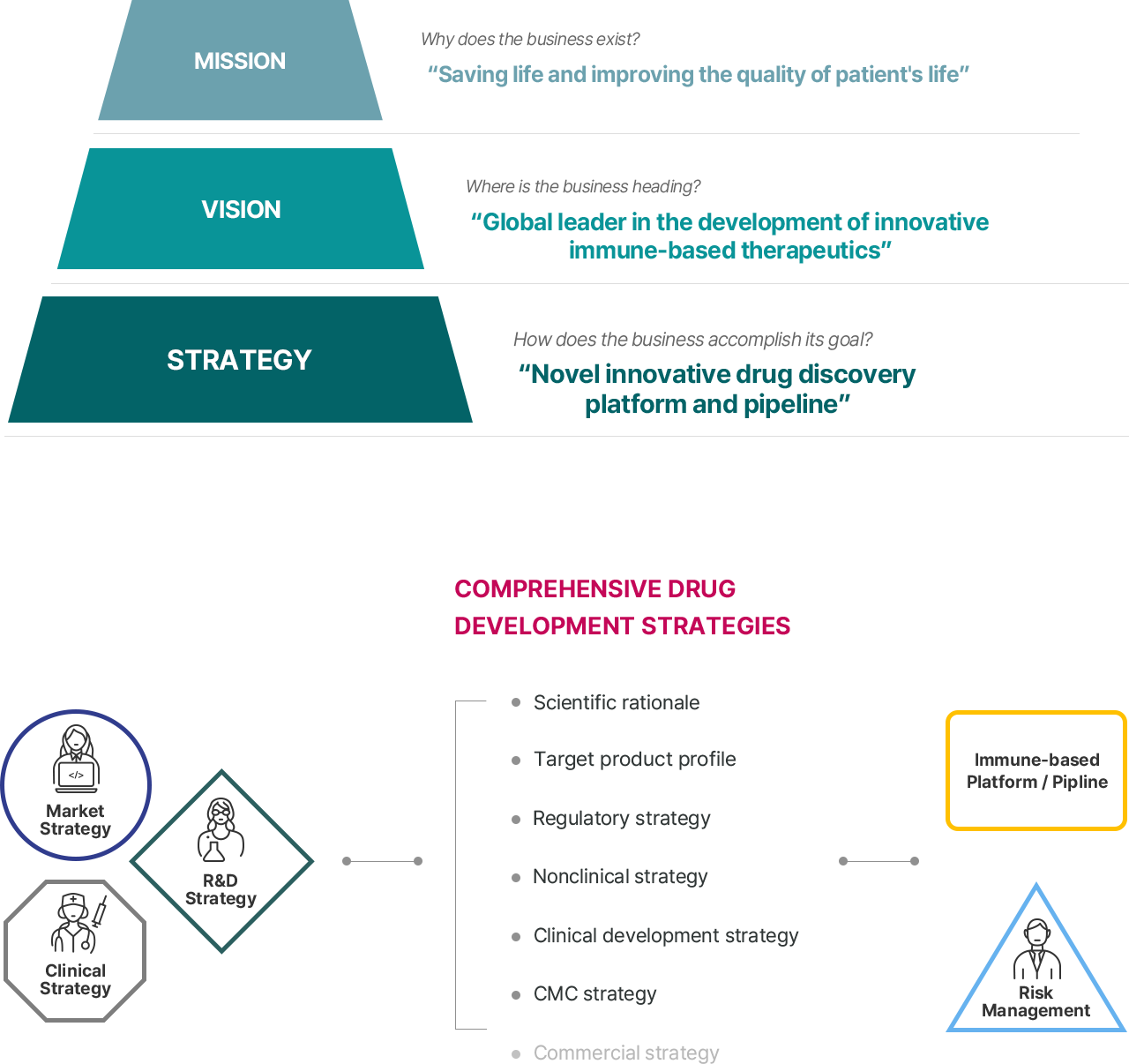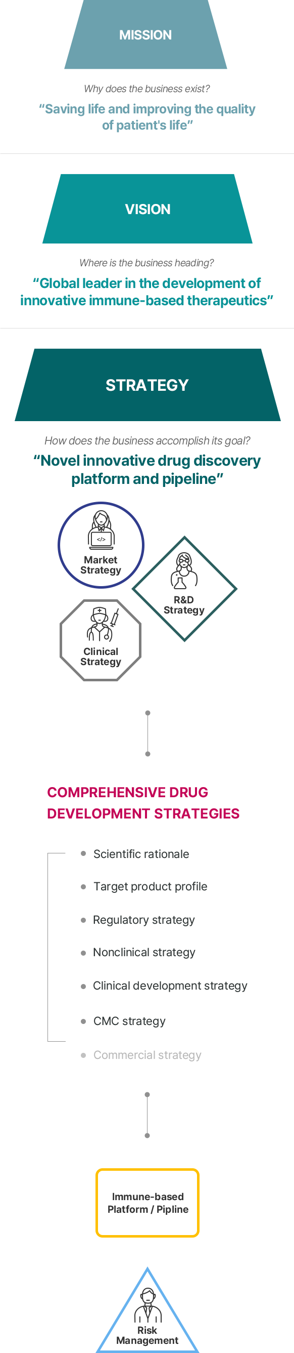 Our company is composed of personnel with experience and expertise in the entire drug development cycle,